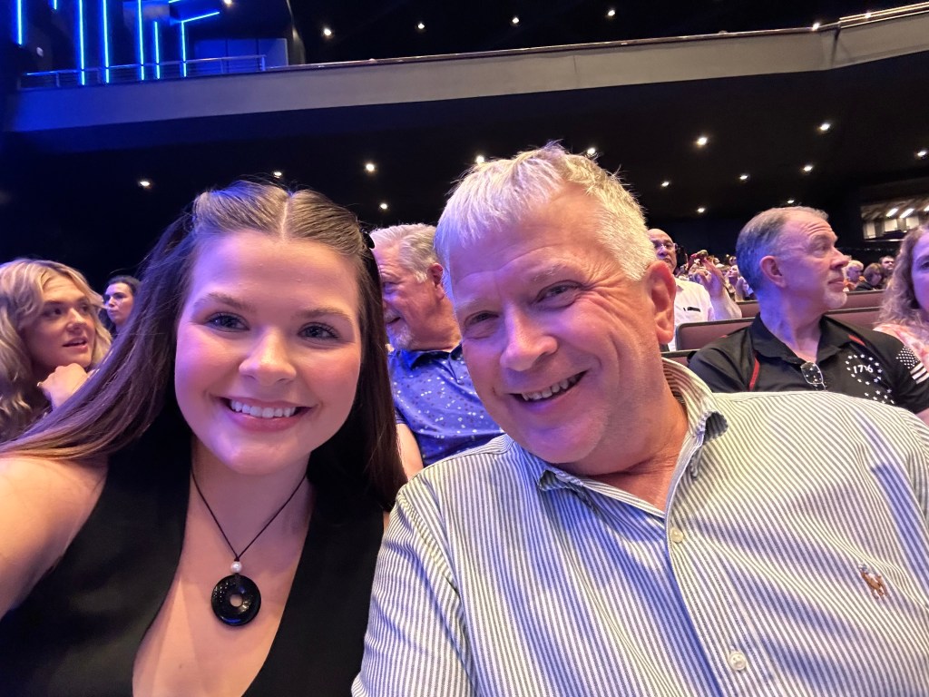 the last song of the show was landslide, and i cried. i knew i was going to, but i couldn’t help it. suddenly, i was nine years old as my dad drove me to guitar lessons. i had my headphones on, listening to the landslide cover by the chicks. i was 19 listening to records on my grandparents old record player (that even has a place for cassettes) with my dad before leaving for college again. Then, I was 20, newly heartbroken and freshly adult, but i was still next to my dad, he was still there for me, and we were still listening to music.