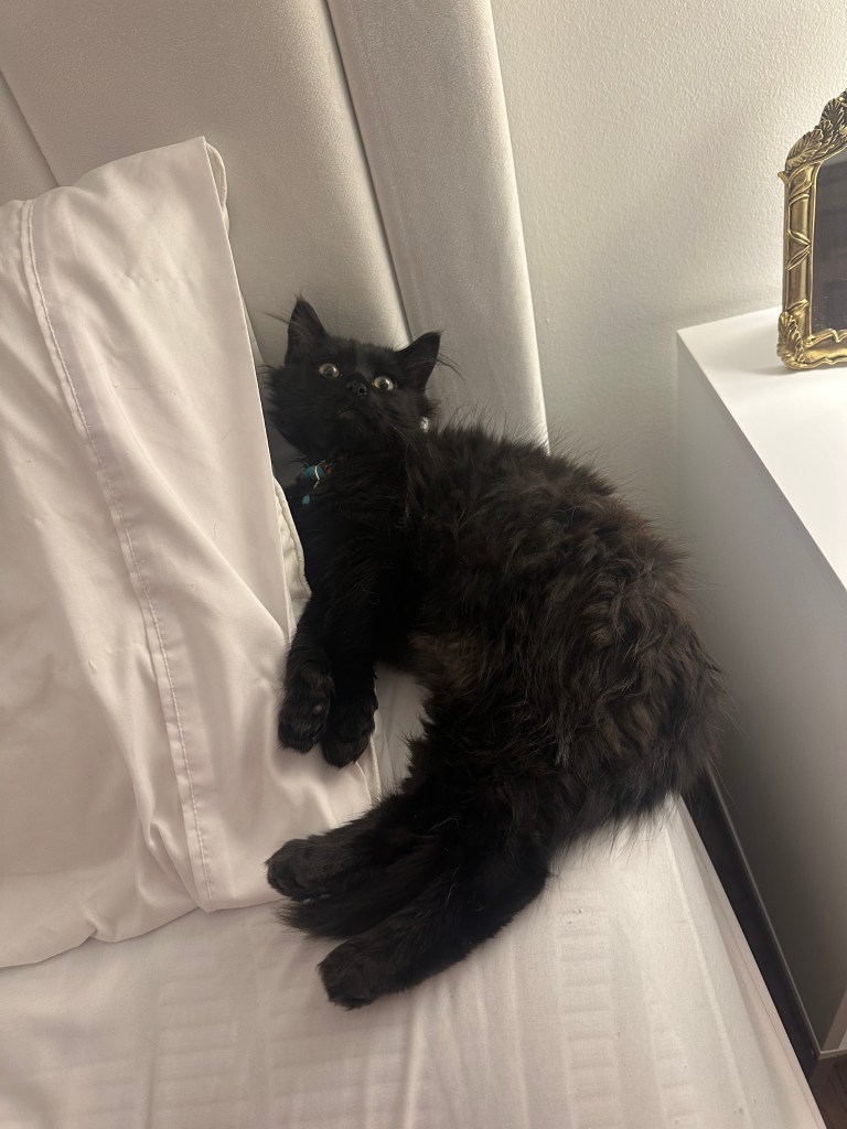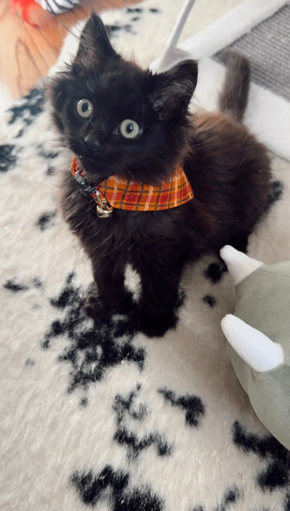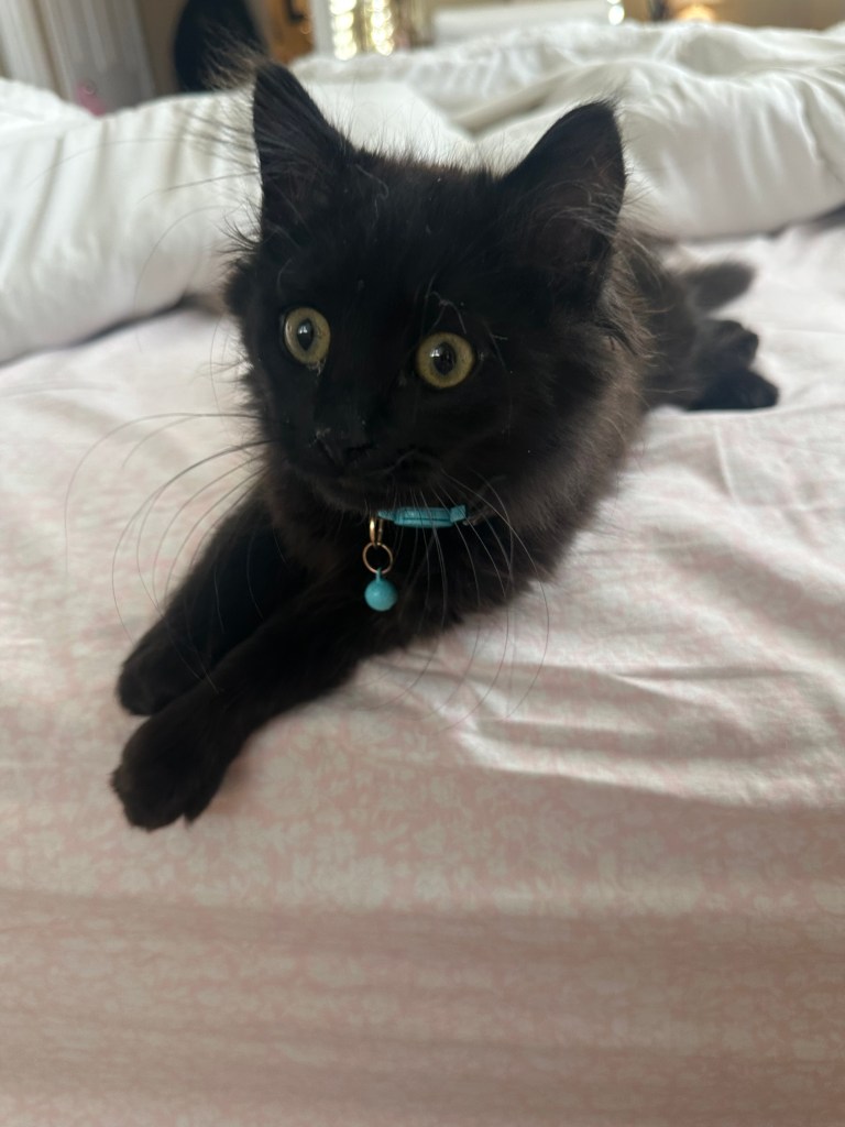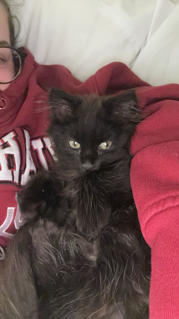 I have news!! Last month I adopted a kitten🥹. His name is teddy, and he’s a perfect little black cat.